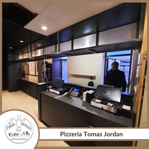 Quand l’acier s’invite jusque dans vos assiettes ! À Châtenoy-le-Royal, près de Chalon-sur-Saône, à quelques mètres seulement de la Métallerie des Alouettes, nous avons eu le plaisir de contribuer à l’aménagement de la nouvelle pizzeria Tomas Jordan, inaugurée très récemment. Nos équipes ont réalisé un ciel de bar, une verrière d’accueil, ainsi qu’une étagère sur mesure destinée au stockage des cartons de pizzas...
