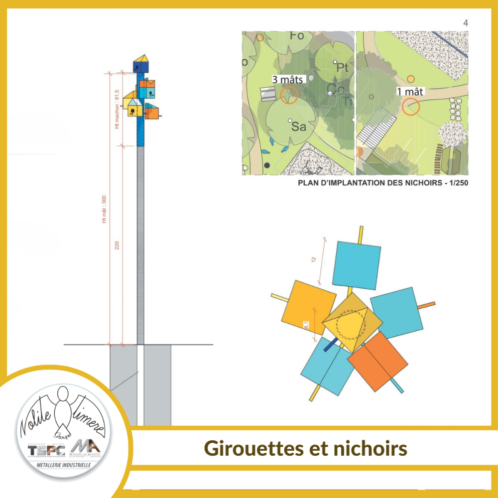 - Girouettes design : fabrication des mâts et des structures pour indiquer le sens du vent avec élégance.