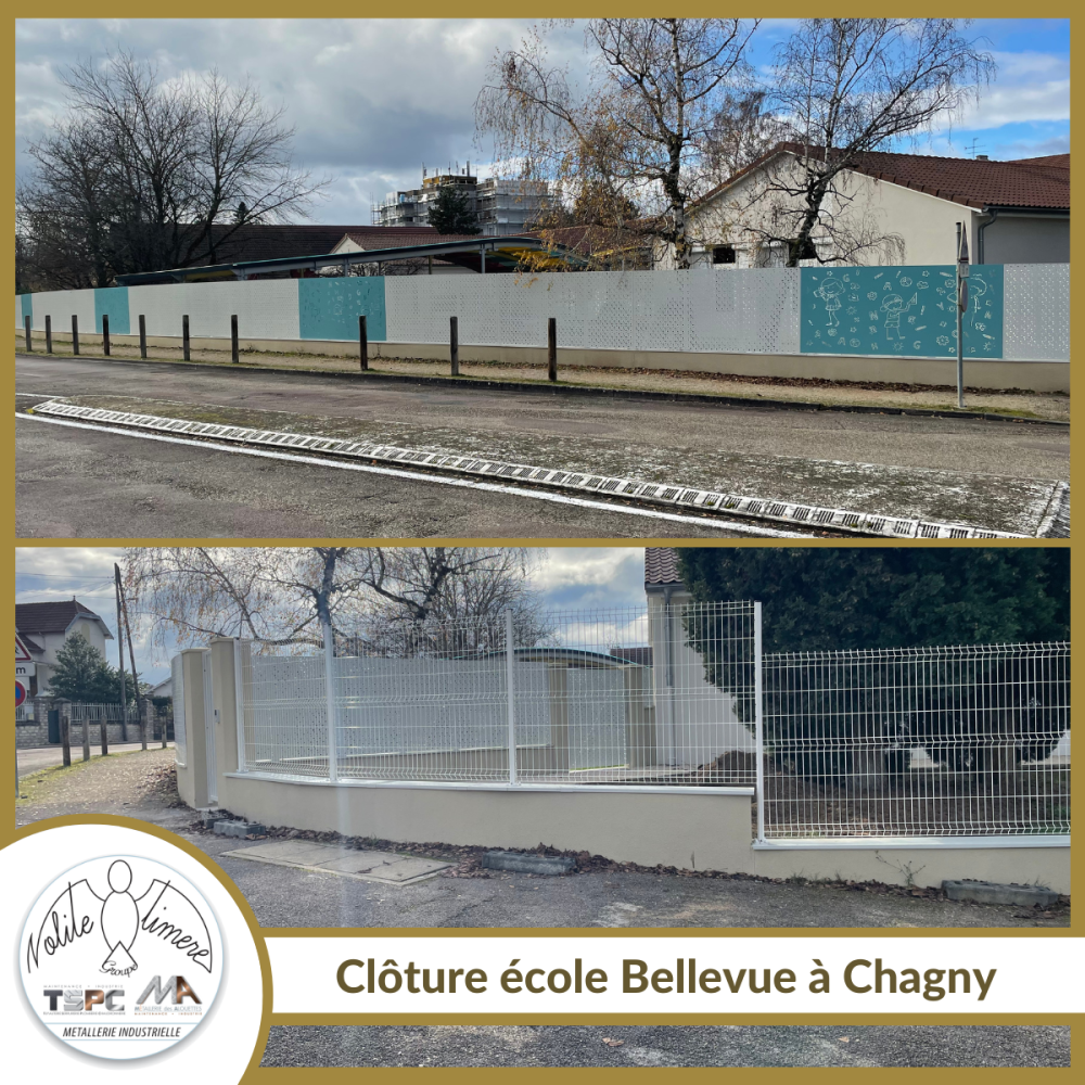 Dans le cadre de la rénovation des clôtures de l’école Bellevue à Chagny, nos équipes ont poursuivi les travaux avec la pose d’une clôture rigide venant épouser les contours du muret extérieur, pour assurer la fermeture complète et la protection du site.
