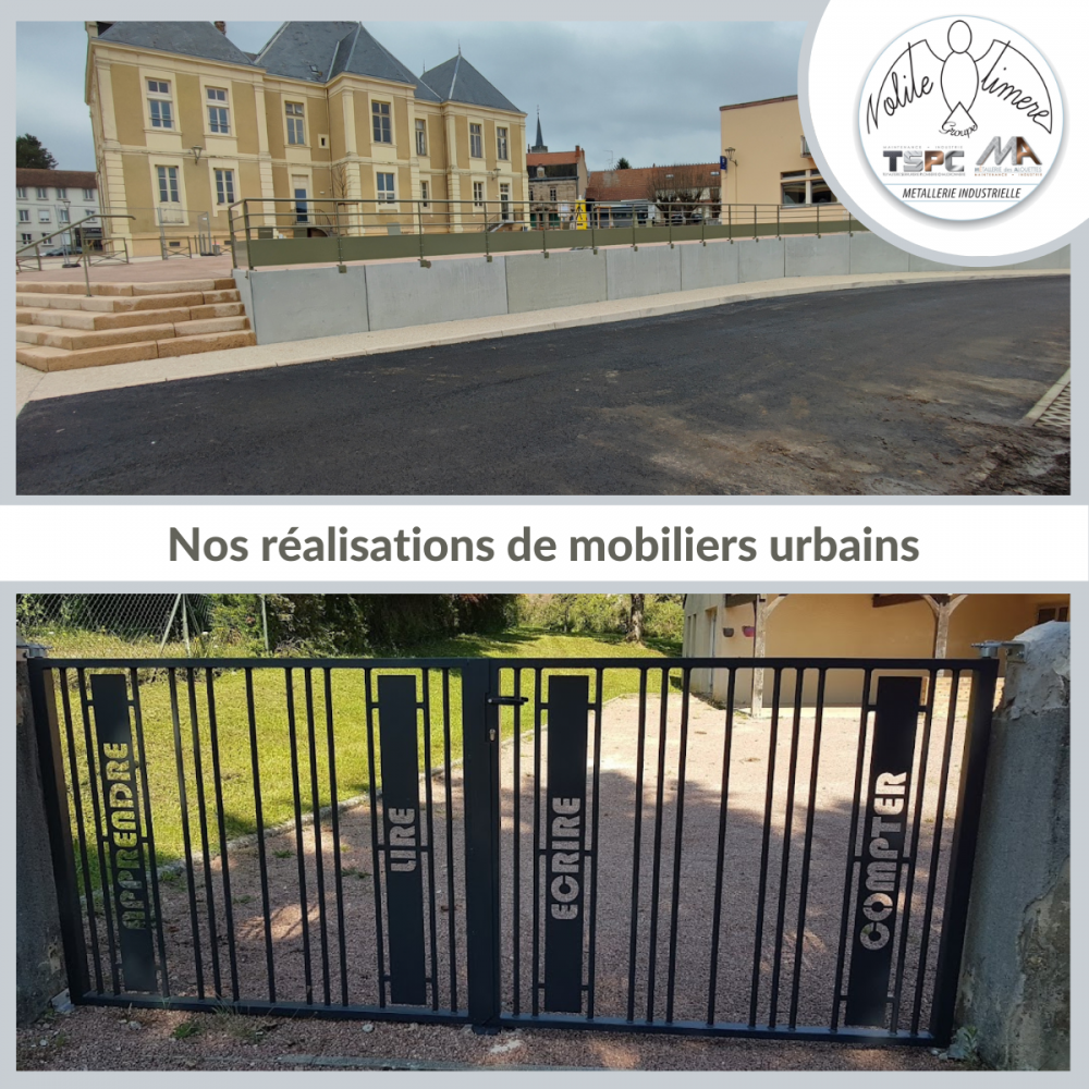 Nous réalisons régulièrement des projets de mobiliers urbains : bancs publics, grilles, portails, luminaires, garde-corps, ombrières, etc.