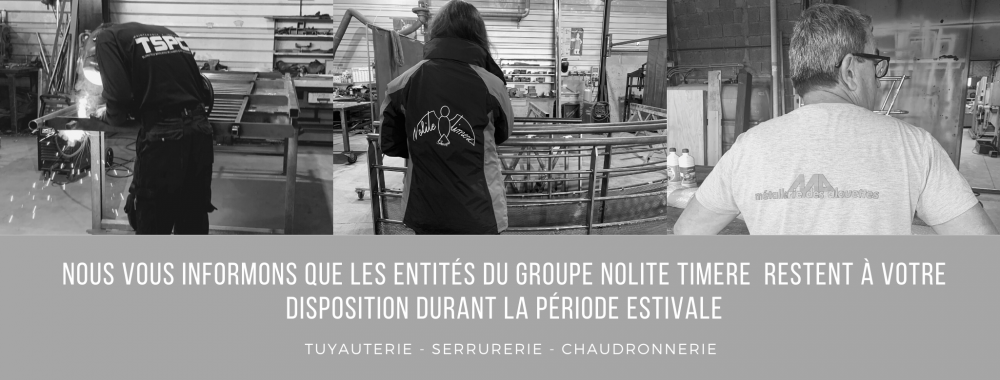 Nous vous informons que les sociétés du groupe NOLITE (TSPC et la Métallerie des Alouettes) restent ouvertes durant la période estivale. Nous restons à votre disposition pour vos travaux de serrurerie, tuyauterie et chaudronnerie.